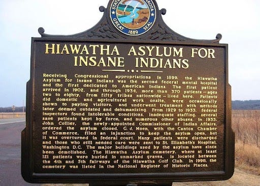 The Hiawatha Asylum for Insane Indians in Canton, South Dakota, opened in 1902. On paper, it was the nation’s second federally operated psychiatric hospital. In practice, it was an extra-judicial prison, meaning it operated essentially in the healthcare realm.